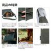 注意事項●防水帆布生地はパラフィン加工を施しておりますので、生地重量に多少増減が生じます。記載の製品重量は目安になりますのであらかじめご了承願います。●チョークマーク(折れたりあたったりした際に入る線やシワ)はパラフィン加工の特徴ですが、気になる場合はアイロンなどの蒸気を当てていただくと薄くなります。また、直接生地にアイロンをあてると変色する恐れがございますのでご注意ください。●摩擦により色移りする事があります。特に汗や雨など湿った状態での摩擦は色移りの原因になります。●火のそばに置かないでください。