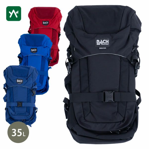 35Lの本格的バックパック。背面にはクッションフォームと身体側にはメッシュ素材を採用を採用。Bachが推奨するパッキングシステム『BACH 3D SMARTDIVIDER』採用モデルで内部には上部と下部を2気室に分けるパーティションを装備。両サイドポケット、トップポケット、レインカバーを装備。背面長:53cm