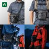 行動中はチェストバッグとして使うと、カメラの重量を分散し肩への負担を軽減できます。(画像はLサイズ)