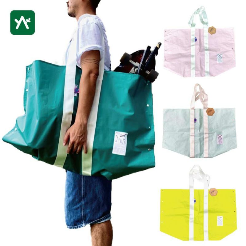 ビッグサイズの万能トートバッグ。両側のスナップボタンを外すとレジャーシートとしてご使用いただけます。