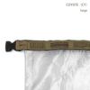 中が見えるロールトップ式の収納ケース。 中に収納したら面ファスナーを留めて、口元をくるくると巻き、バックルを留めます。