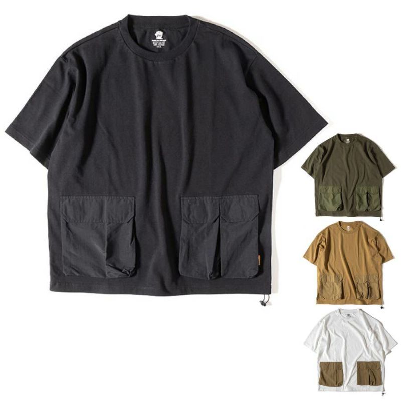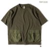厚手のコットン生地を使ったタフなTシャツ、GRIPSWANYらしいミリタリーテイストでユニークなナイロンポケットがアクセント。裾にはドローコードが施されており着丈をアレンジ出来ます。キャンプで物を落とさない工夫のデザインになっています。