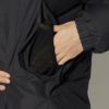 こちらは気温や天候に合わせてフードが取り外せるジャケットです。表にステッチを出さないことで、コールドスポットを可能な限り軽減しています。立体スリーブは腕が動かしやすく、袖口はプッシュアップのしやすいゴム仕様。裾とフードは、外側からの風の侵入を防ぐアジャスター付きです。フロントはファスナー開きのセキュリティポケットとウォームポケットを両立し、用途に合わせた内ポケットも設けました。
