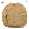胸ポケットが1つ、腰ポケットが2つのシンプルなデザインで、インナーとして着用する場合は、どんなアウターとも合わせやすくなっています。さらに、ノーカラーにする事で、襟があるとアウターの襟と干渉し合う事もありません。アウターとしては、ダウンステッチを表生地に出さない事で、アウターとしても着やすくなっています。逆にインナーにはパーカーやタートルネックなども合わせ易くなっています。