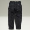 ハンマーループや左右アシンメトリー形状の特徴的なサイドポケット等の機能性はそのままに、ROOT CO.アパレルラインにもマッチするよう太すぎないシルエットにテーパードを利かせました。最大の特徴である両サイドの縦三連のギアループが、より機能的な印象を醸し出しギア感を与えています。仕様