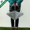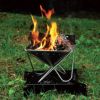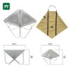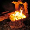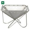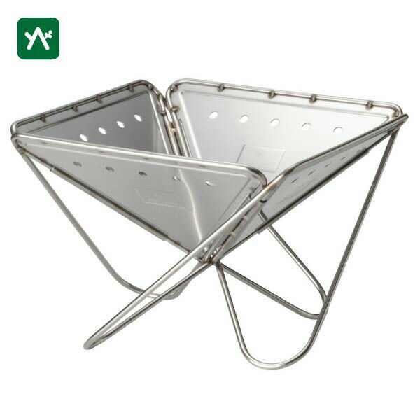 設営は折り畳まれた焚火台を開いて地面に置くだけです。逆三角錐のデザインは薪や炭の燃焼を促します。サイズはS・M・Lの3タイプです。人数やスタイルに合わせて選ぶことができます。またオプションのブリッジを使えばネットやプレートをセットして焚火、炭火料理を楽しむことができます。