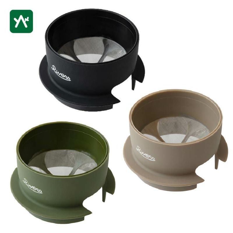 野外でもコーヒーを淹れられる超コンパクトなステンレスフィルタードリッパー。折りたためてカップ内にも収納可。新色オリーブとタンも登場。