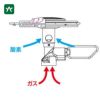 独自の設計でバーナーヘッドの内部に酸素とガスを混ぜて燃焼に最適な状態にするための通路を設けています。これにより空気取入孔がある管の長さを短くして重心を下げることができ、一般的なシングルバーナーよりも高い安定性を実現しています。仕様