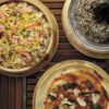 パーティー料理に最適な大皿セット。ザル、ボウル、木製大皿から構成されており、組み合わせを変えることで、ピザ、ざるそば、寿司桶など、様々な大皿料理に対応します。