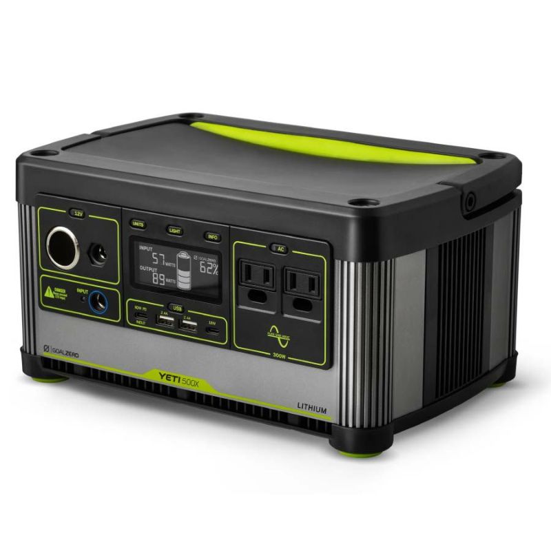 Yeti 500X (120V) Power Stationは、電池容量505Whのリチウムイオン電池を搭載したポータブル電源です。持ち運びにも便利なポータブル設計ながら、最大300WのAC120V出力に対応し、複数台のスマートフォンを充電しながら、同時にポータブル冷蔵庫を稼働させることなども可能。川や山といったアウトドアでの活用に加え、倉庫や納屋、災害時の避難所などの電力が届かない場所においても、幅広く活用することができる製品です。