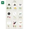 背景には木に見せかけたストライプを配置して自然らしさをイメージ。