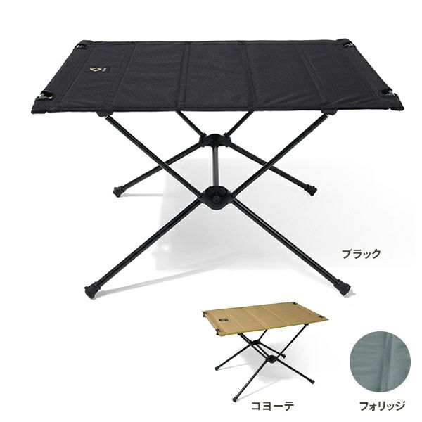 タクティカルチェアにぴったりなタクティカルテーブルSより、大きいテーブルワンサイズの、軽量・コンパクト性に優れた持ち運びに便利な折りたたみ式のテーブルです。