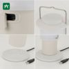 スタンド型充電台の上で卓上照明として使用しつつ、キャンプでのランタンと同様いつでも好きな場所に持っていくことができます。吊るしたり手に持つ際、下にも光が回るよう変形機能があります。?携帯バッテリーなどから外部充電可能です。