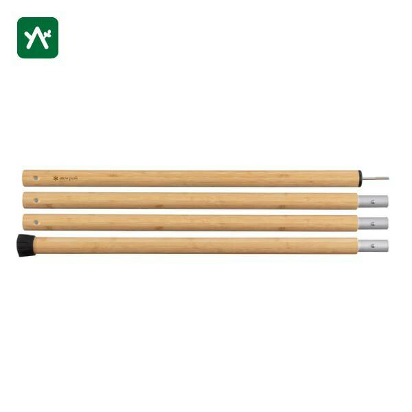 金属感のない木質ポールを使用することでグランピングシーンのような雰囲気を演出してくれます。また、竹の外装の中にウイングポールが入っているため、ソリッドの木製ポールに比べ高い強度を持っています。同じ竹素材のワンアクションテーブルやTake!チェアとの相性も良いアイテムです。長さはタープに使用できる70cmの節、全長280cmのポールです。
