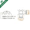 ●セット内容:タープ本体、自在付ロープ(二又用9m×2、3m×4)、ポールケース、ぺグケース、キャリーバッグ