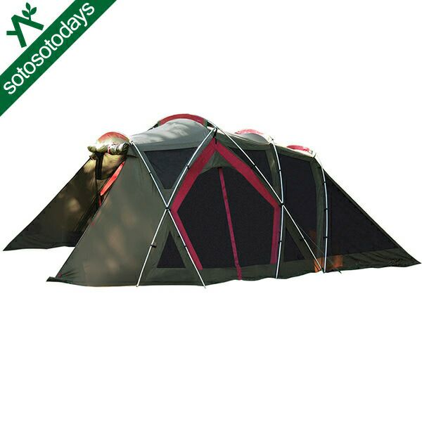 ●材質:本体(フライ)/150Dポリエステルオックス・遮光ピグメントPUコーティング耐水圧3000mmミニマム(ルーフ部)、150Dポリエステルオックス・PUコーティング耐水圧1800mmミニマム(ウォール部)・テフロン撥水加工・UVカット加工、フレーム/A6061(φ16mm・19mm)