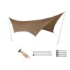 立てやすく、風に強い王道タープ。日差しをブロックするシールド加工で、幕下を涼しく保ちます。