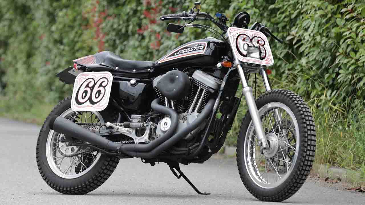 アメリカで親しまれている「フラットトラックレース」で、かつて常勝を誇ったハーレーのレース専用車が「XR750」。そのディテールを忠実に再現しながら、エボリューションエンジンを搭載した2003年モデルまでのスポーツスターの車格に合わせて設計したというのが「テイスト コンセプトモーターサイクル」によるオリジナルの外装キットだ。